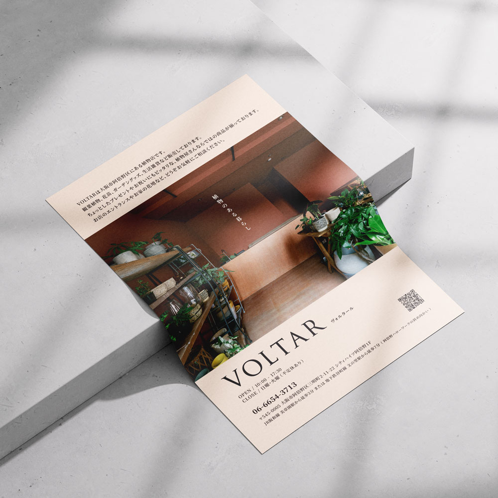 Flyer Design Plants shop 植物店のチラシを作らせていただきました。はじめて作る場合もどんなことを載せたいか、どんな人に配るか、どこに置くかなどお伺いしてご提案いたしますのでご安心ください。 2024年7月26日 投稿先 Flyer ← 過去の投稿へ 次の投稿へ →